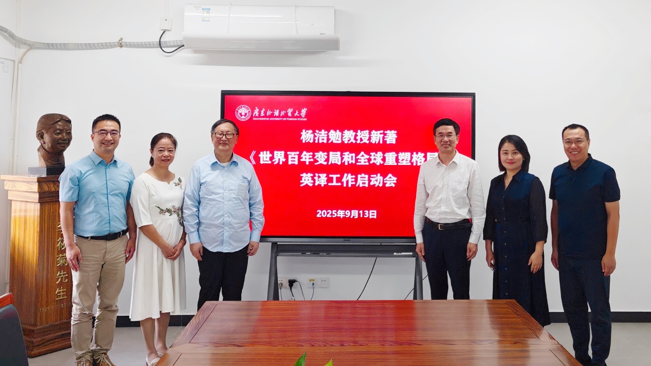 杨洁勉教授对学校及英文学院对著作翻译工作的支持表示感谢,并深入阐述了其在国别区域研究领域的学术思考。他强调,本书立足于百年变局的关键历史节点,既回溯百年间大国关系的演变脉络与全球治理体系的迭代历程,又展望未来百年国际格局的发展走向,以历史纵深解析现实议题,以未来视野引领实践探索,致力于为构建中国自主的国际关系知识体系筑牢理论根基。他表示,广外在翻译领域声誉卓越,并充分肯定我校在翻译领域的学术声誉和高水平翻译人才培养方面取得的成果。他对本次翻译工作的圆满完成充满信心,同时期待以此次翻译合作为起点,未来双方能够进一步拓展学术著作翻译与国际传播等方面的深入合作。